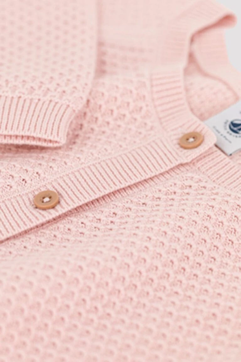 Crafted from soft, high-quality cotton, this cardigan is perfect for delicate baby skin, providing warmth without compromising breathability. Its classic design and gentle pastel hue make it an adorable addition to any baby’s wardrobe. Available now at a special price—keep your baby snug and stylish with Petit Bateau’s trusted quality!