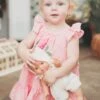 in an allover Terrazzo print featuring an attached diaper cover with snaps at the inseam for easy baby wear. This dress is as comfortable as it isÂ