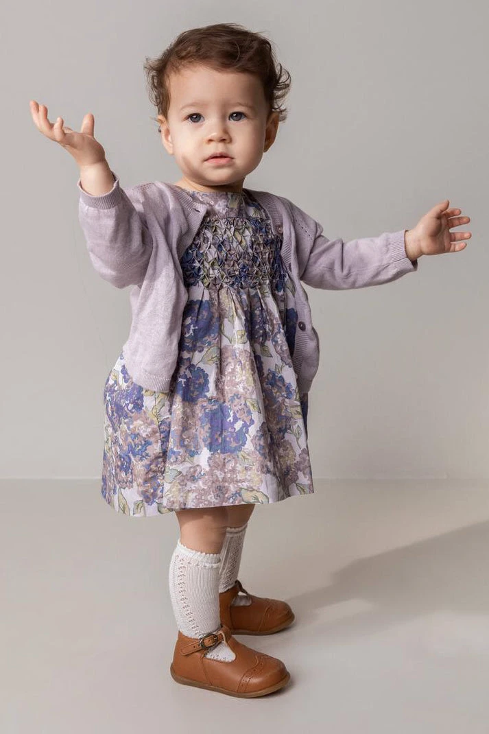 dress with ruffles at the sleeves and light smocking on the front. Pair with the Darcel