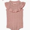 featuring a smocked neckline with a sweet ruffle detail. Made with