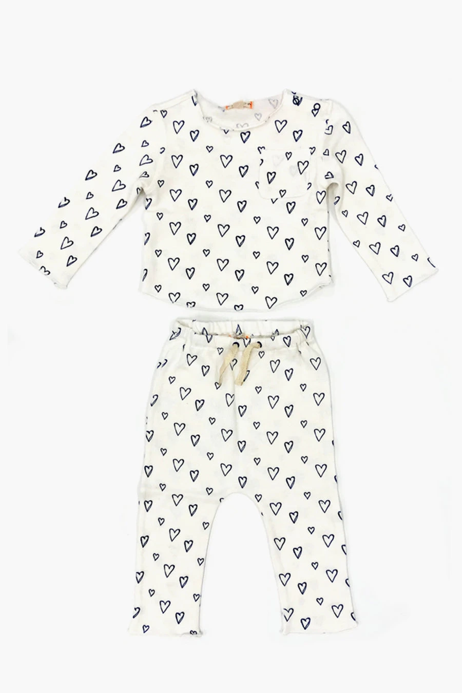 is a cozy, ultra soft 2-piece set that includes a crewneck top and drawstring bottom, perfect for lounging. 100% cotton, machine wash cold.