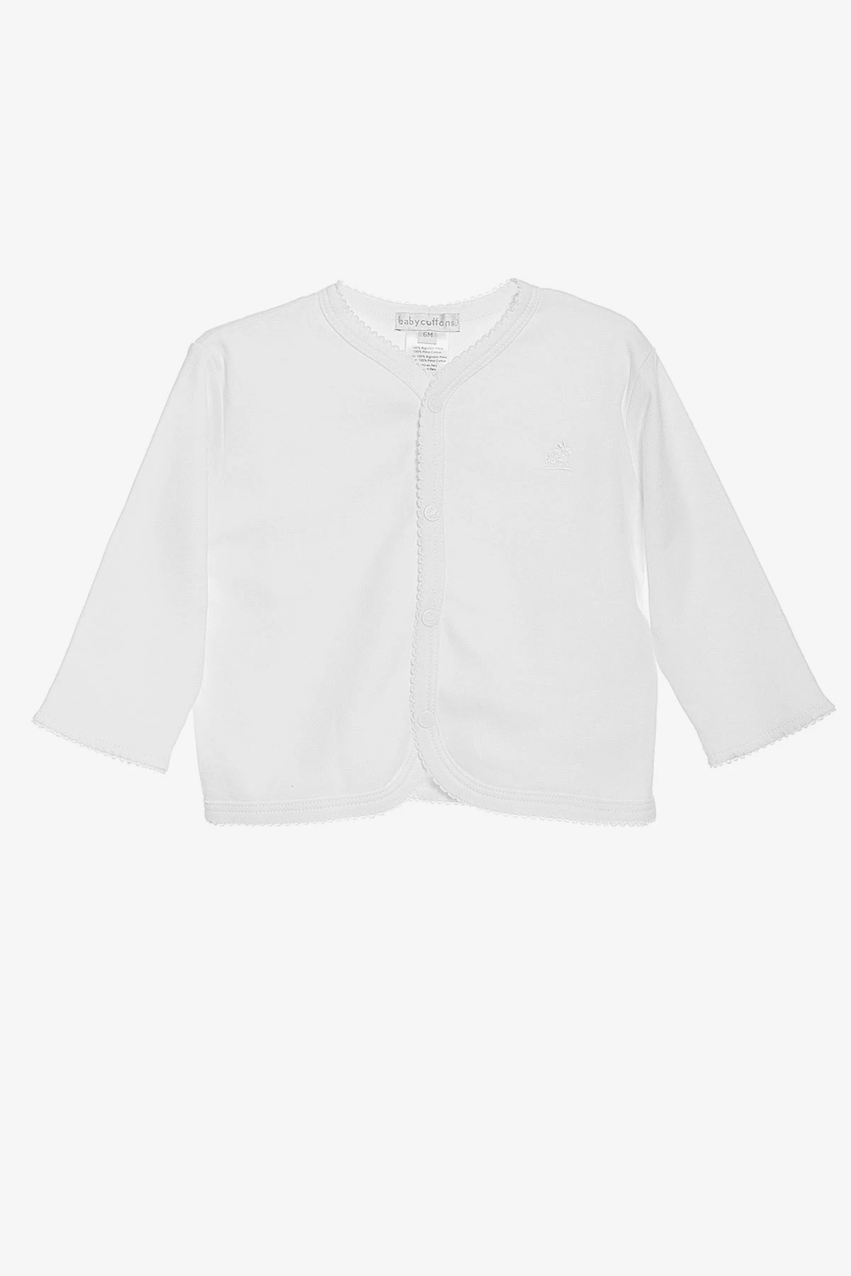 . Features long sleeves and a button front. 100% Peruvian pima cotton, machine wash.