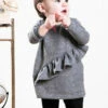that can be worn with tights for a complete fall look featuring a peter pan collar and a closure in the back for easy wear. 100%