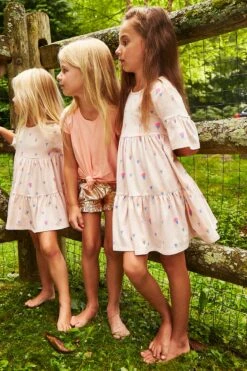 with ruffles made for twirling. 57% cotton, 38% modal, 5% spandex, machine wash.