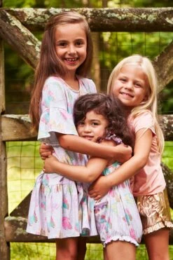 with ruffles made for twirling. 57% cotton, 38% modal, 5% spandex, machine wash.