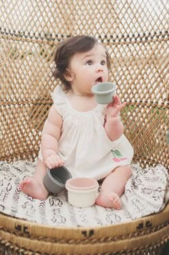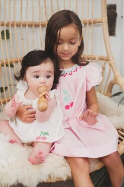 with delicate embroidery. The top features flutter sleeves and the adorable