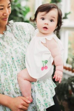 with delicate embroidery. The top features flutter sleeves and the adorable