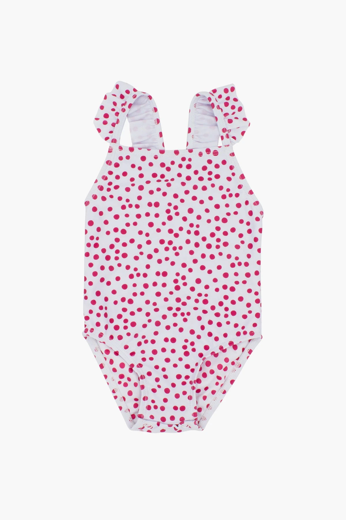 featuring a fun print, ruffle straps and UPF 50+ sun protective fabric. 80% nylon, 20% elastane, machine wash cold.