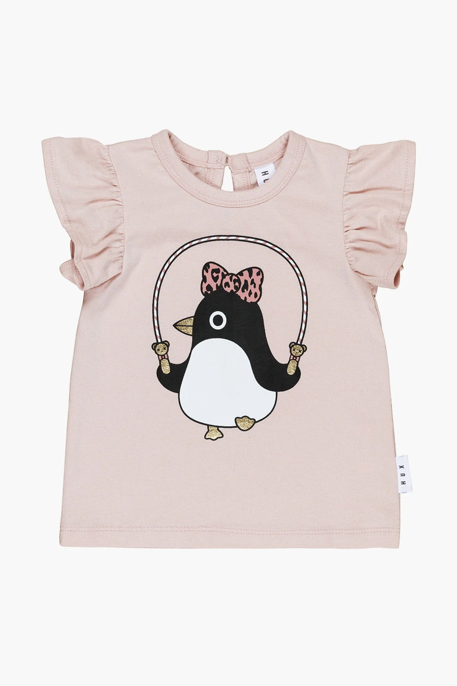 penguin print and cute ruffled sleeves. 95% organic cotton, 5% elastane, machine wash.