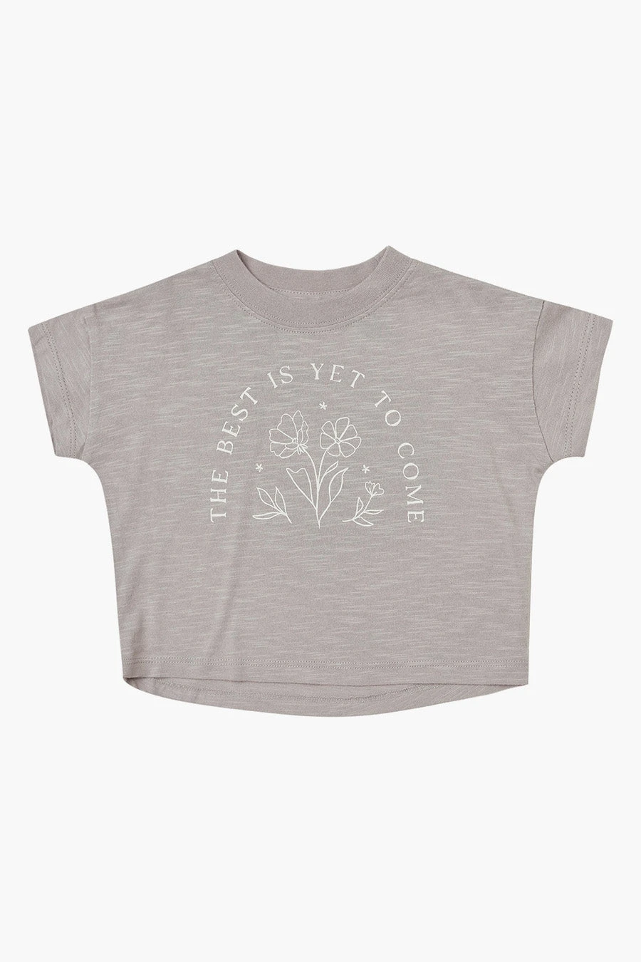 . The boxy shape makes for a stylish look. Featuring a flower graphic on the front for a pop of fun. Pair with favorite shorts or skirt to complete this trendy outfit.