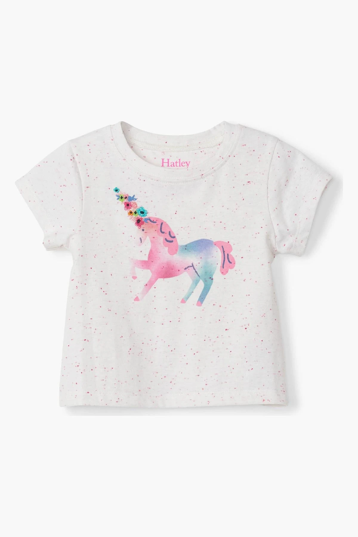 with embroidery detailing at the front, a snap placket on the left shoulder in an allover speckled jersey material. 60% cotton, 40% polyester, machine wash.