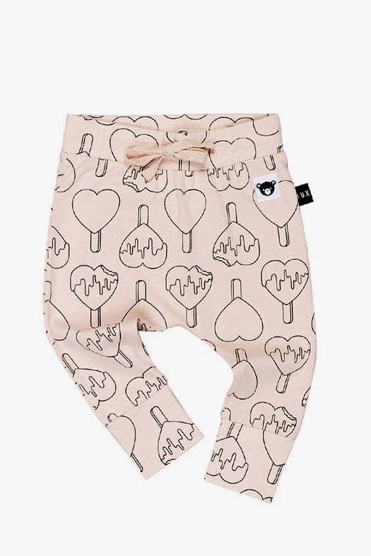 featuring a heart popsicle theme. Features an elasticized and drawstring waist. 100% organic cotton jersey, machine wash.