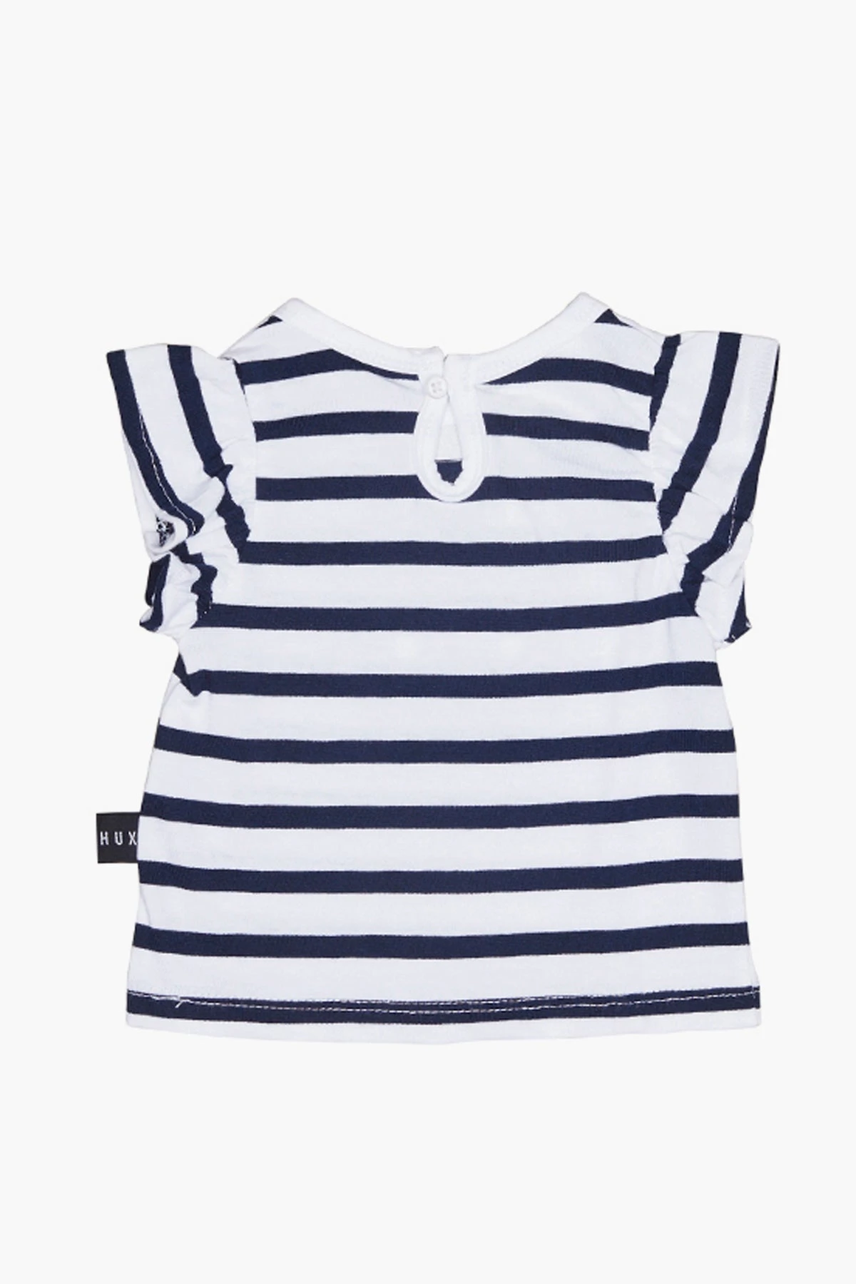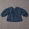 with ruffled sleeves and a cat applique on the front. 100% organic cotton, machine wash.