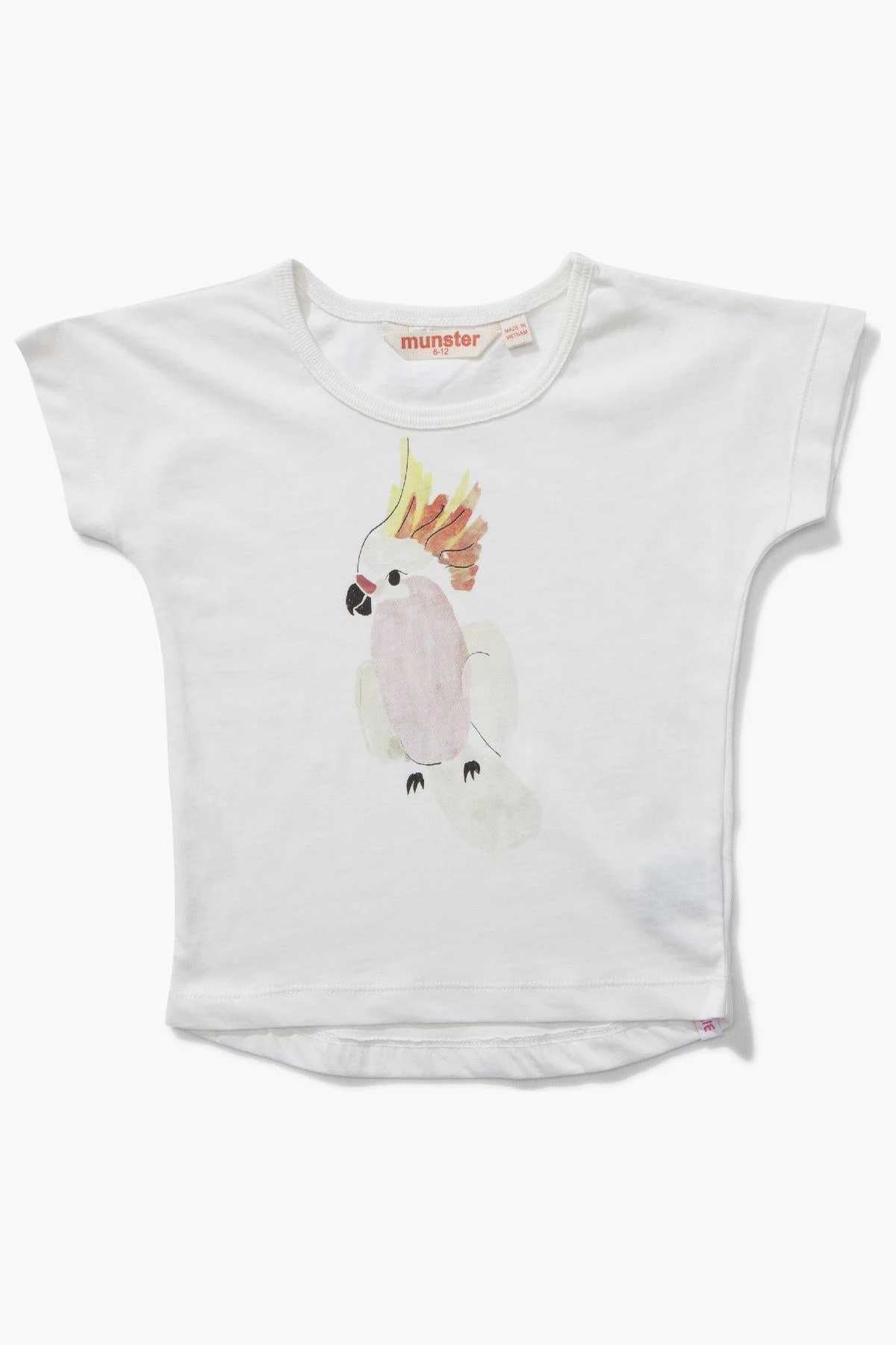 is made in a cream color and features a bird graphic