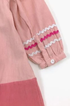 with a colorblock hem and wavy stitch detailing around the cuffs and neckline. The four button front closure helps to make it adjustable for your child’s comfort and style. 100% cotton, machine wash cold, tumble dry low.