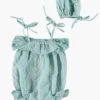 . Matching hat included. 100% cotton, fully lined, machine wash.