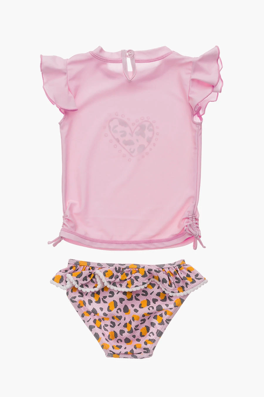 with a pink top and fun leopard print bottoms. Made in 80% nylon, 20% elastane, rinse and hang to dry.