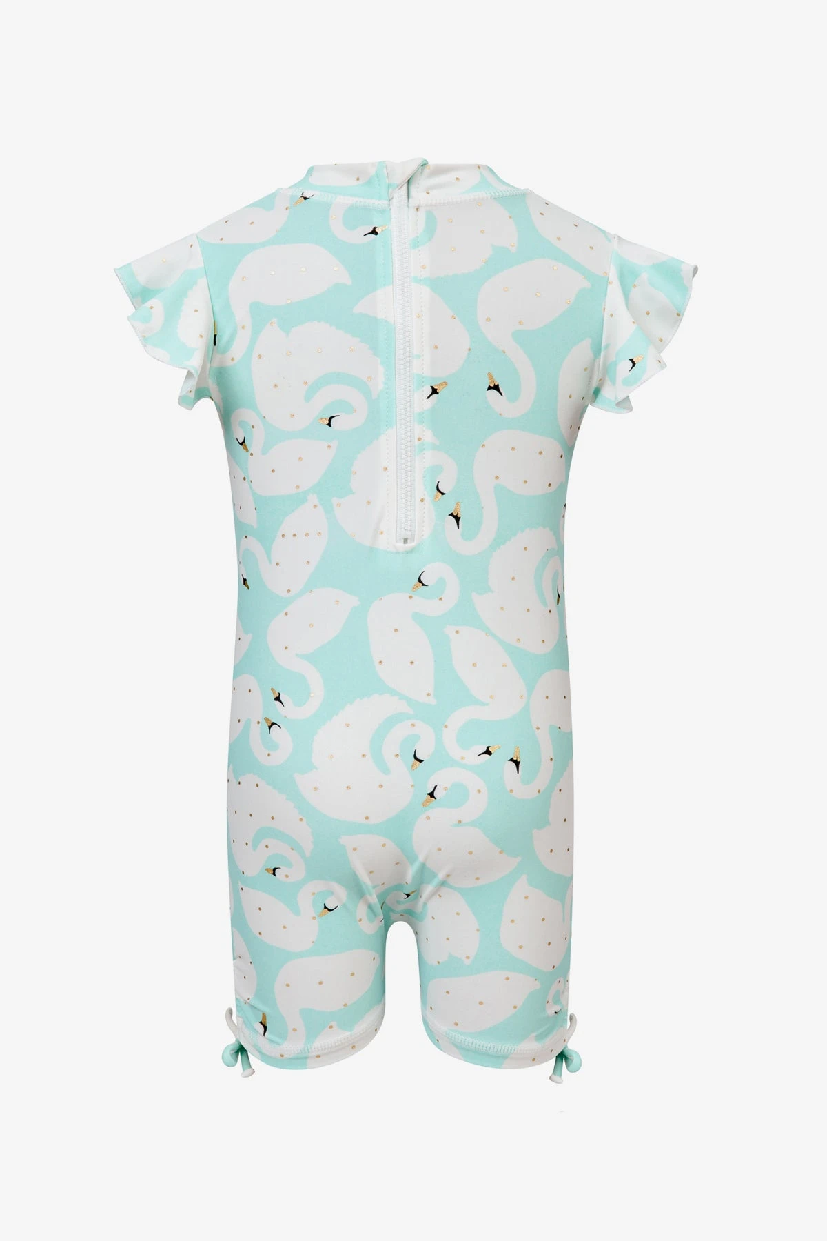 . Made for play both in and out of the water, the ruffled short sleeve