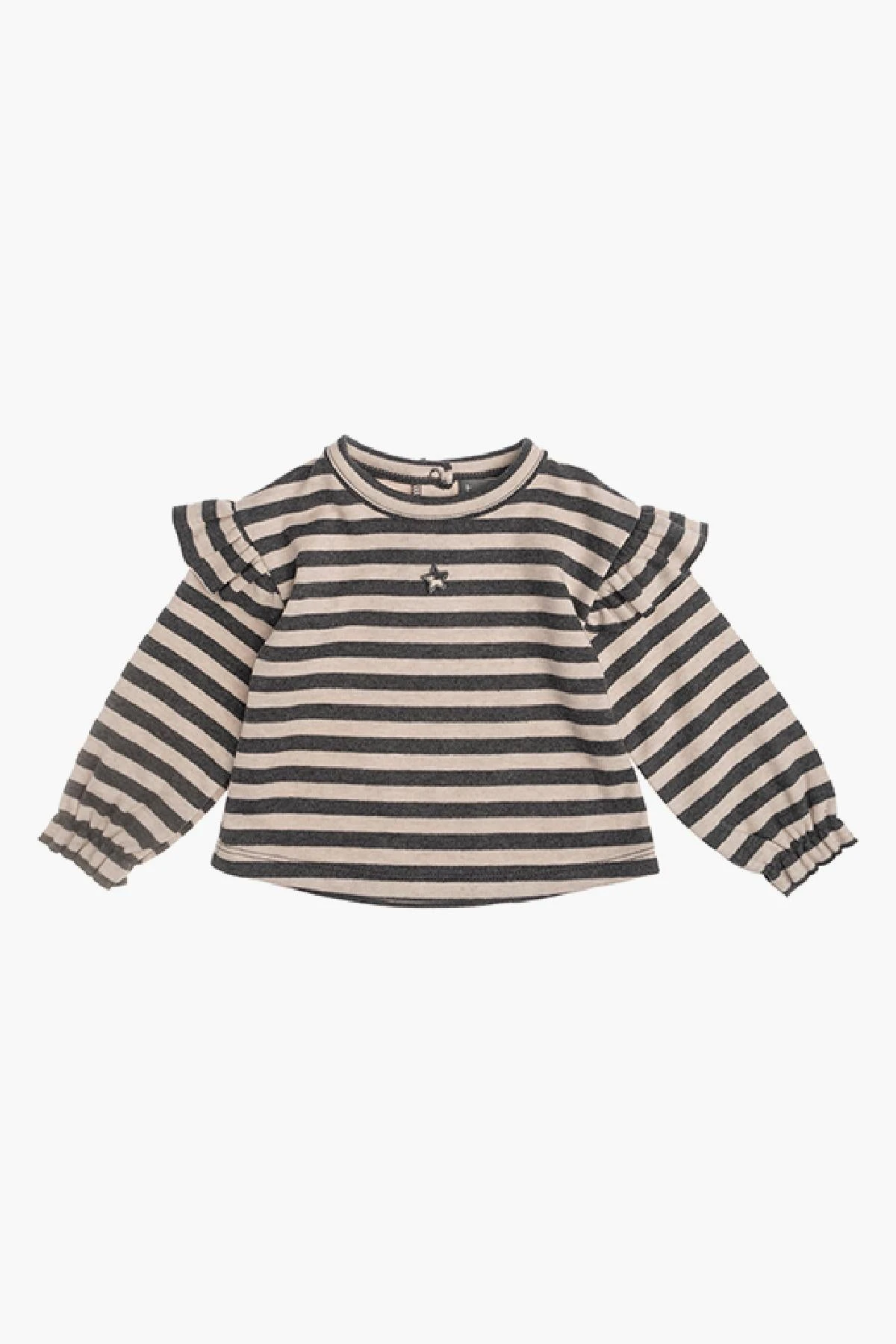 featuring ruffles at the shoulders and gathered elastic at the wrists for a cute fit. 100%