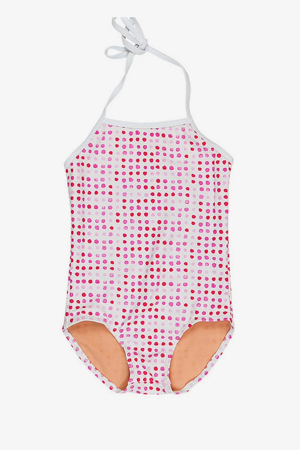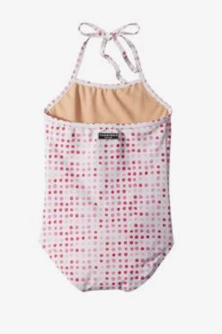 with an inside liner and an adjustable halter tie around the neck. Shell: 80% nylon, 20% spandex; Lining: 92% polyester, 8% spandex. Machine wash cold.