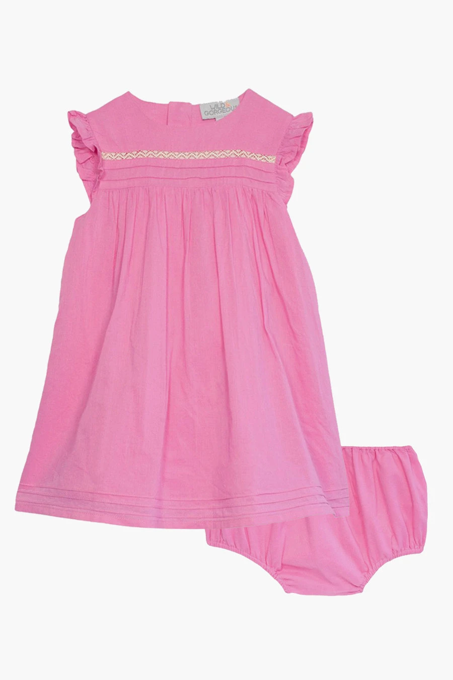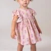 with lace trim detail, flutter sleeves and matching bloomers. 100% cotton, machine wash cold.